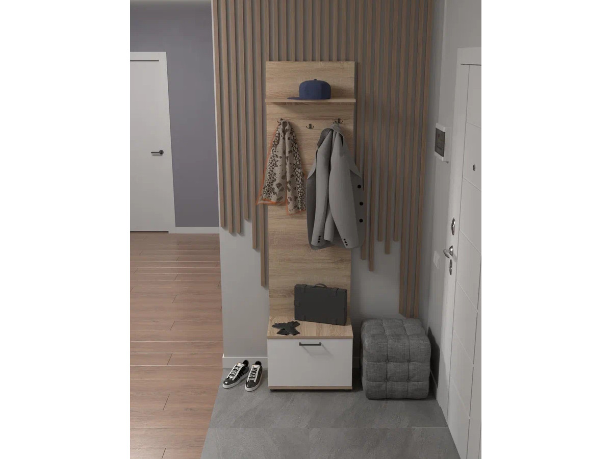 Тумба с вешалкой в прихожую арт. 181 дуб сонома/белый