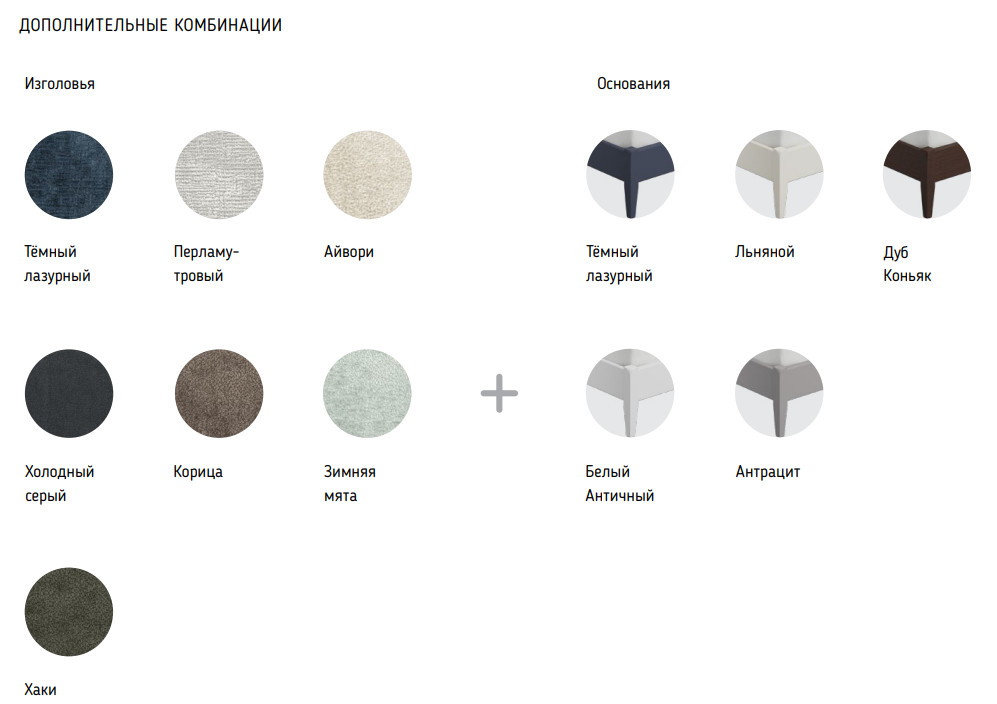 Доступные цвета: комбинации цвета изголовья и царги