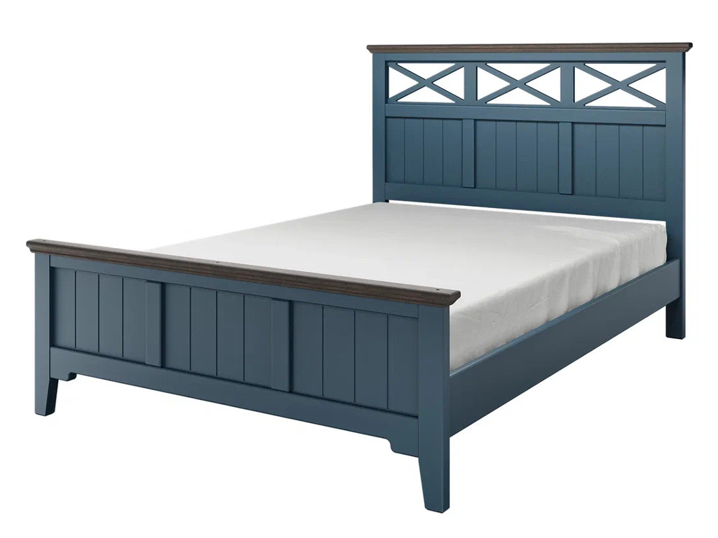 - Кровать Грация-5 1400 Сапфировый с карнизом Дуб коньяк