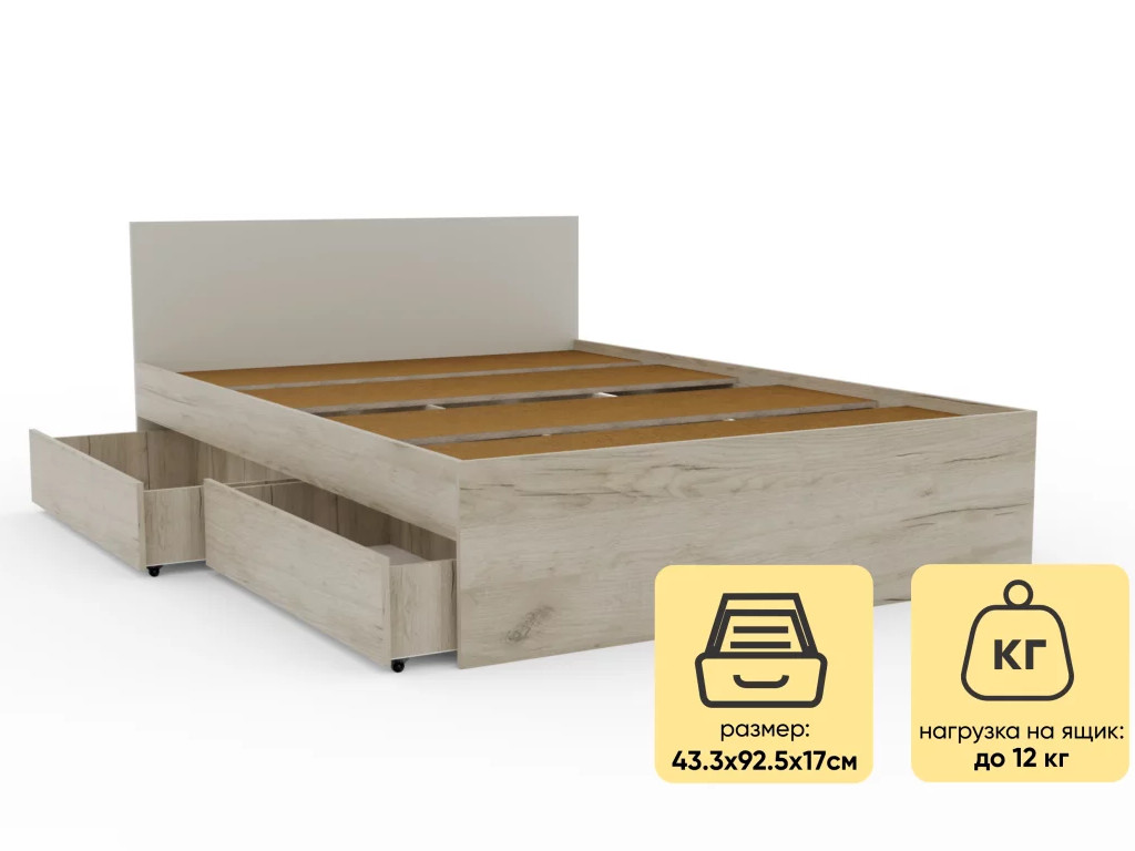 - Кровать Монблан с ящиками 140х200 см Кашемир