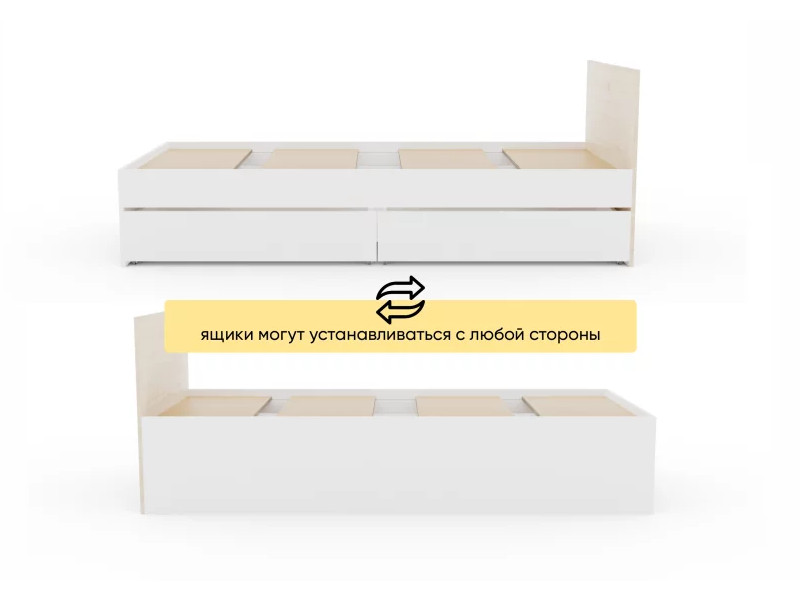 - Кровать Монблан с ящиками 90х200 см Белый Шагрень