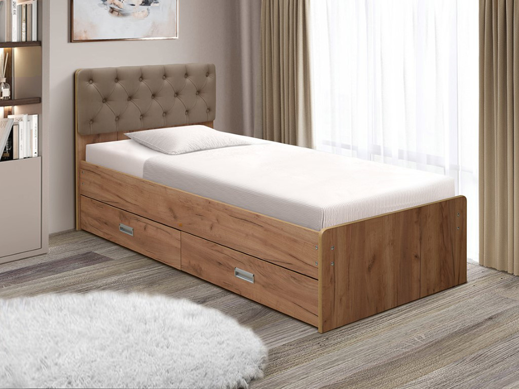 - Кровать одинарная №7 с ящиками 900х2000 мягкая спинка каретная стяжка