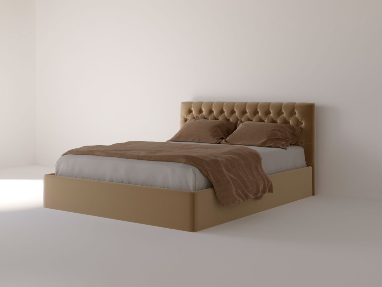 Изголовье: Изголовье оформлено с эффектом каретной стяжки, что создает эффектный акцент в дизайне. Этот элемент не только эстетичен, но и функционален, обеспечивая поддержку во время чтения или отдыха.