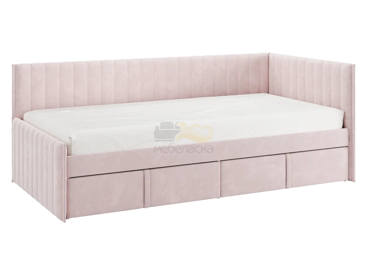 Кровать-тахта с ящиками Твикс цвет велюра нежно-розовый