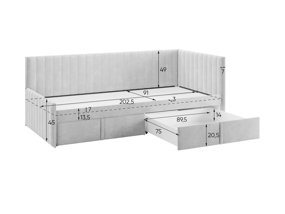 Дополнительно можно приобрести наматрасник в цвет обивки и мягкий ограничитель.