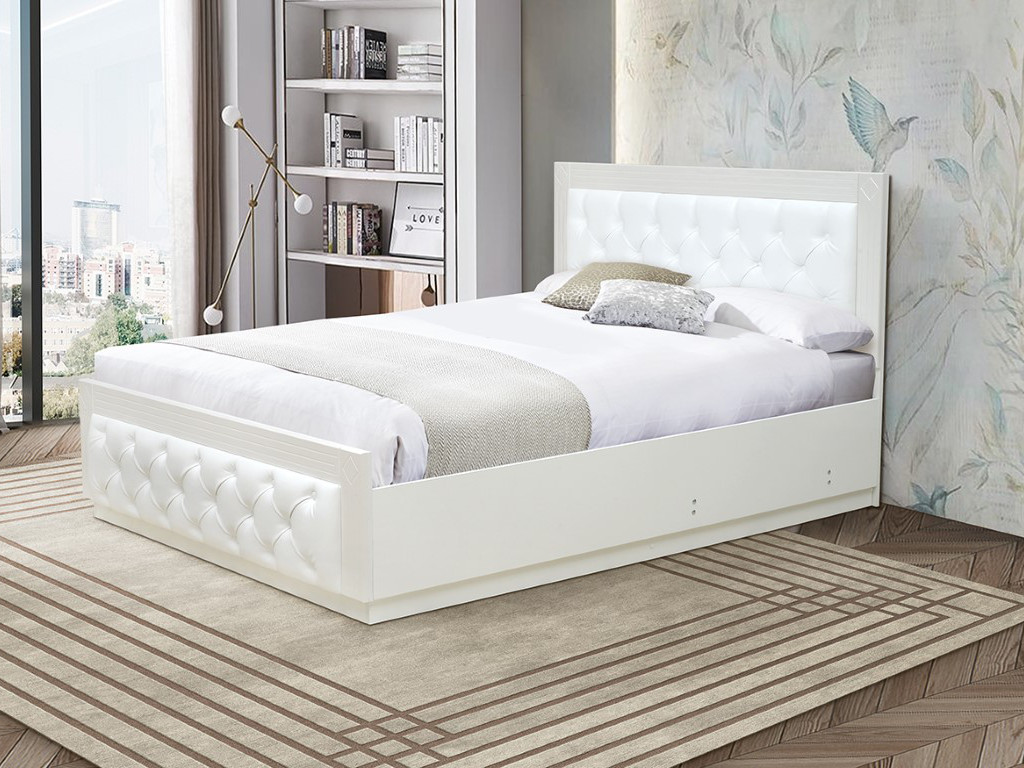 - Кровать Венеция 13.1 1600 с подъемным механизмом кожзам белый