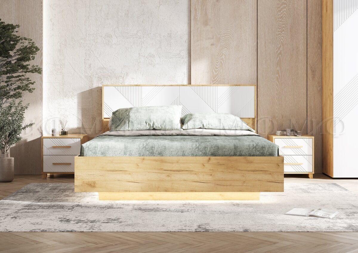 Цена за комплект: Кровать парящая 1,6м (ортопед дерево), Шкаф 3-х створчатый, Тумбы прикроватные