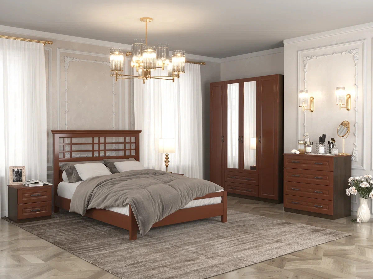 Цена за комплект: комод 4 ящика, тумба прикроватная, шкаф ШР-4, кровать ГЕРДА 1400 мм, Комплектующие на кровать с ламелями 1400 мм