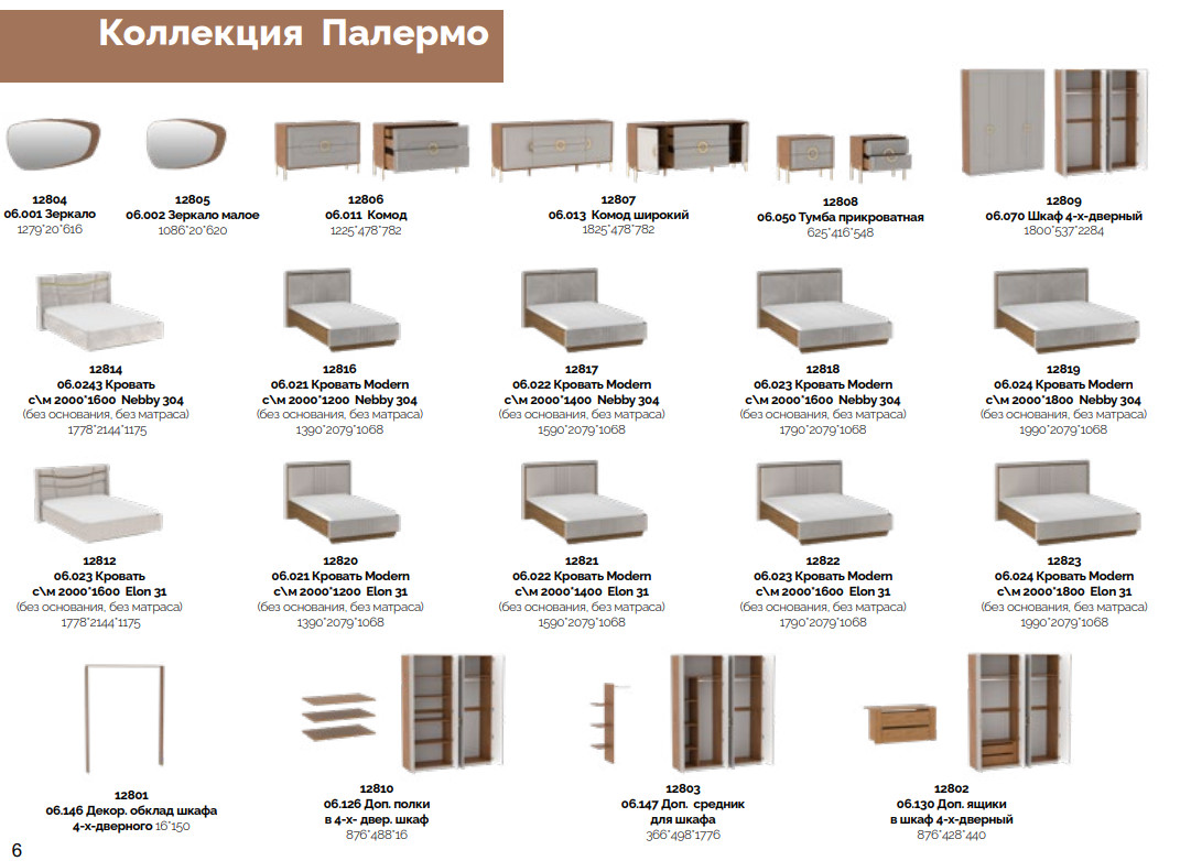 Цена за комплект: Комод, Зеркало, Шкаф 4-дверный, Тумбочка прикроватная (2шт), (Elon 31) Кровать 1600 с ПМ , Ортопедическое основание 1600