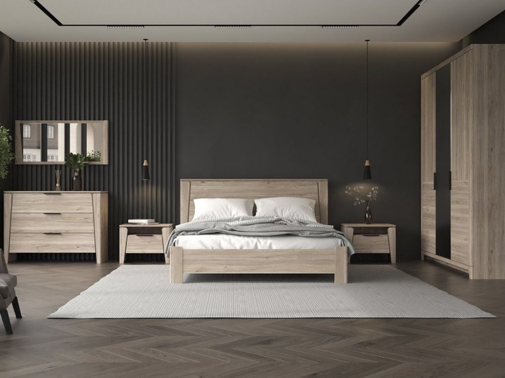 Цена за комплект: Зеркало, Комод, Тумба прикроватная (2 шт), Шкаф 3-х дверный широкий зеркальный, Кровать 1400, Ортопедическое основание 1400*2000
