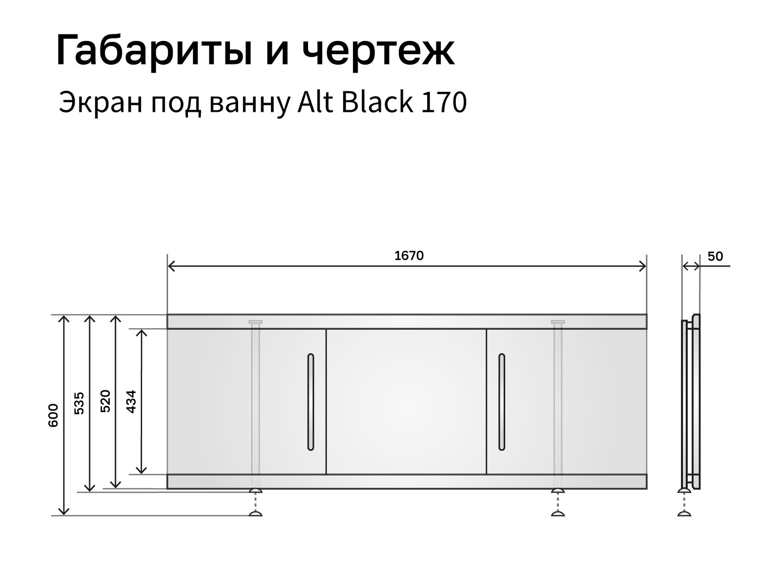 - Экран под ванну МДФ Alt Black 1700 мм белый