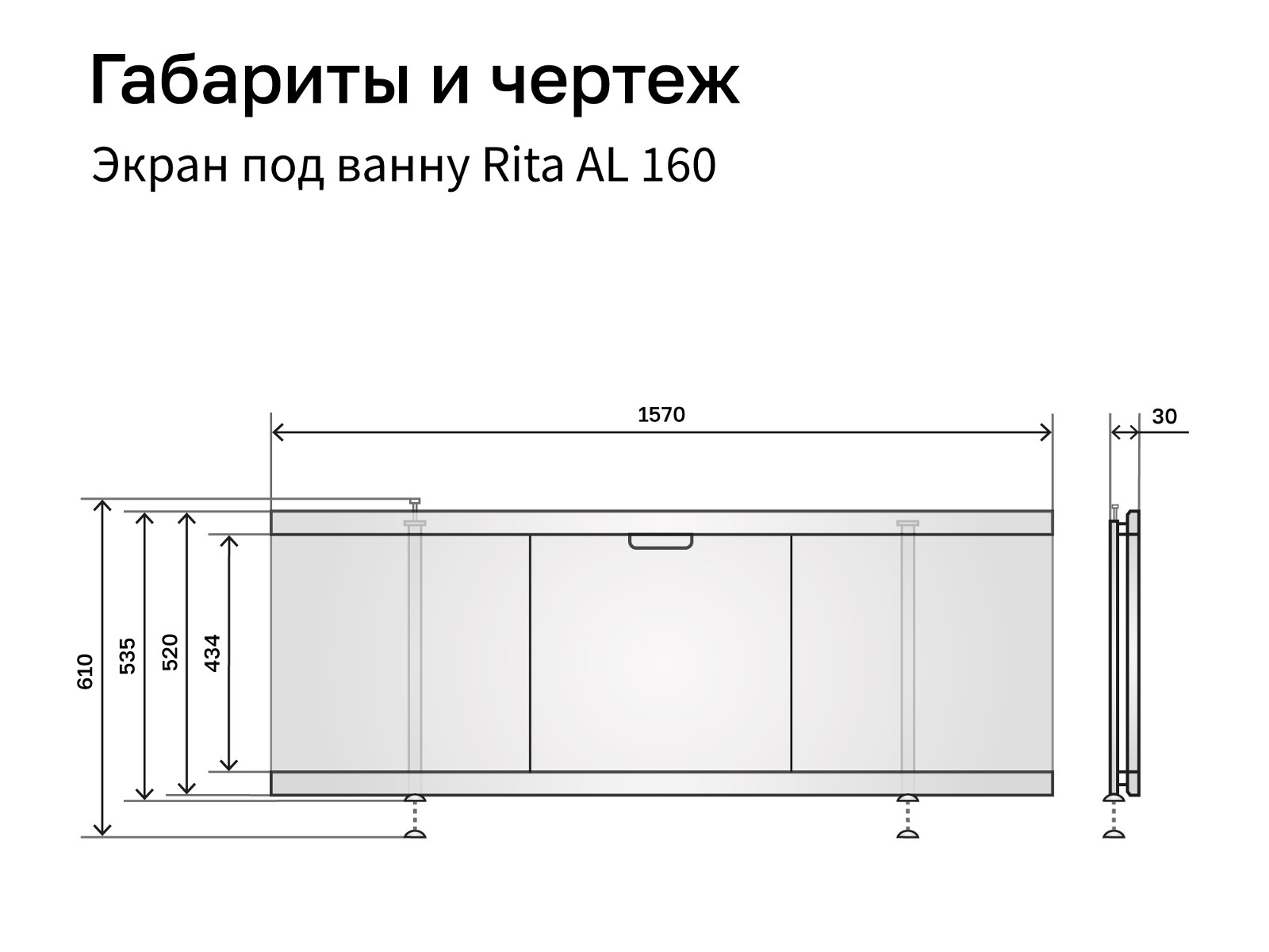 - Экран под ванну МДФ Rita AL 1600 мм
