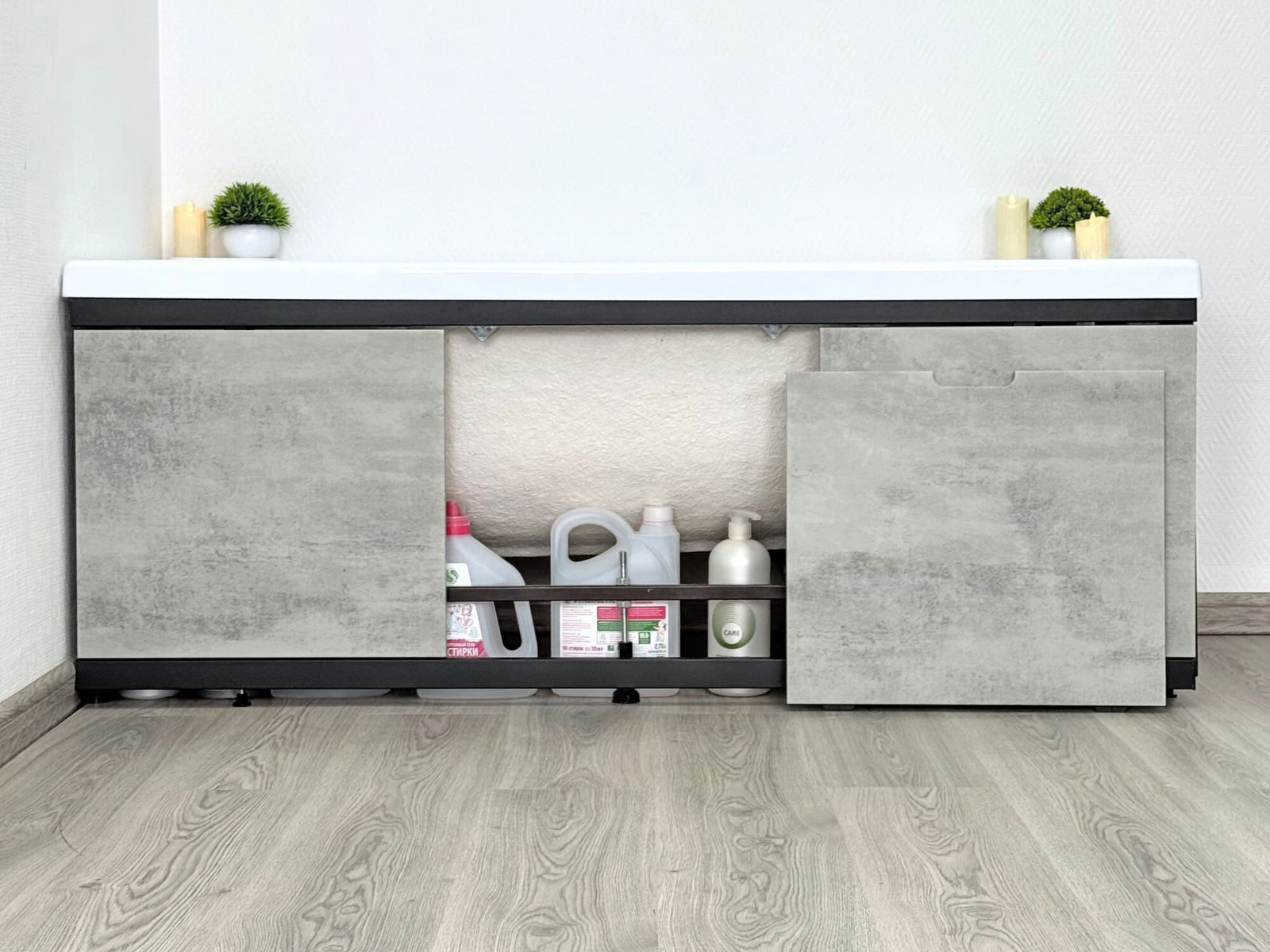 - Экран под ванну МДФ Rita Black 1500 мм серый бетон