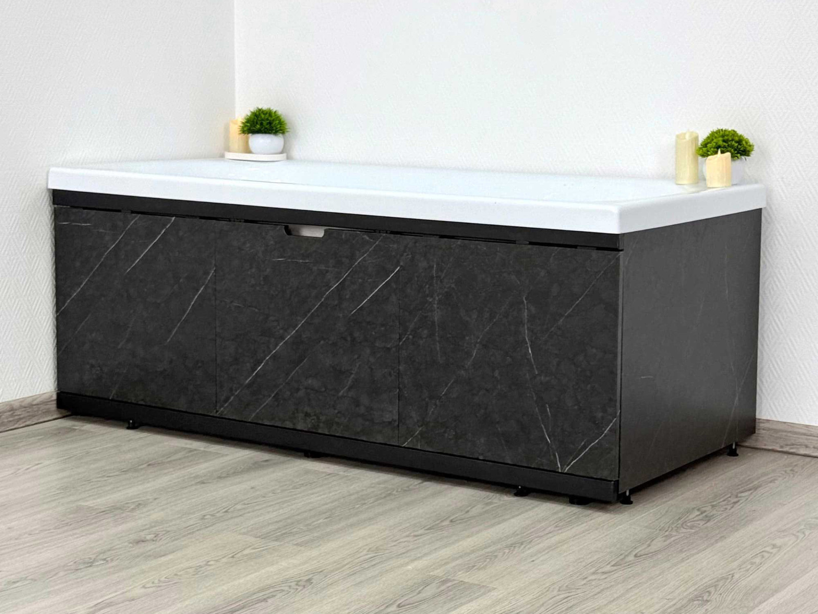 - Экран под ванну МДФ Rita Black 1600 мм черный мрамор