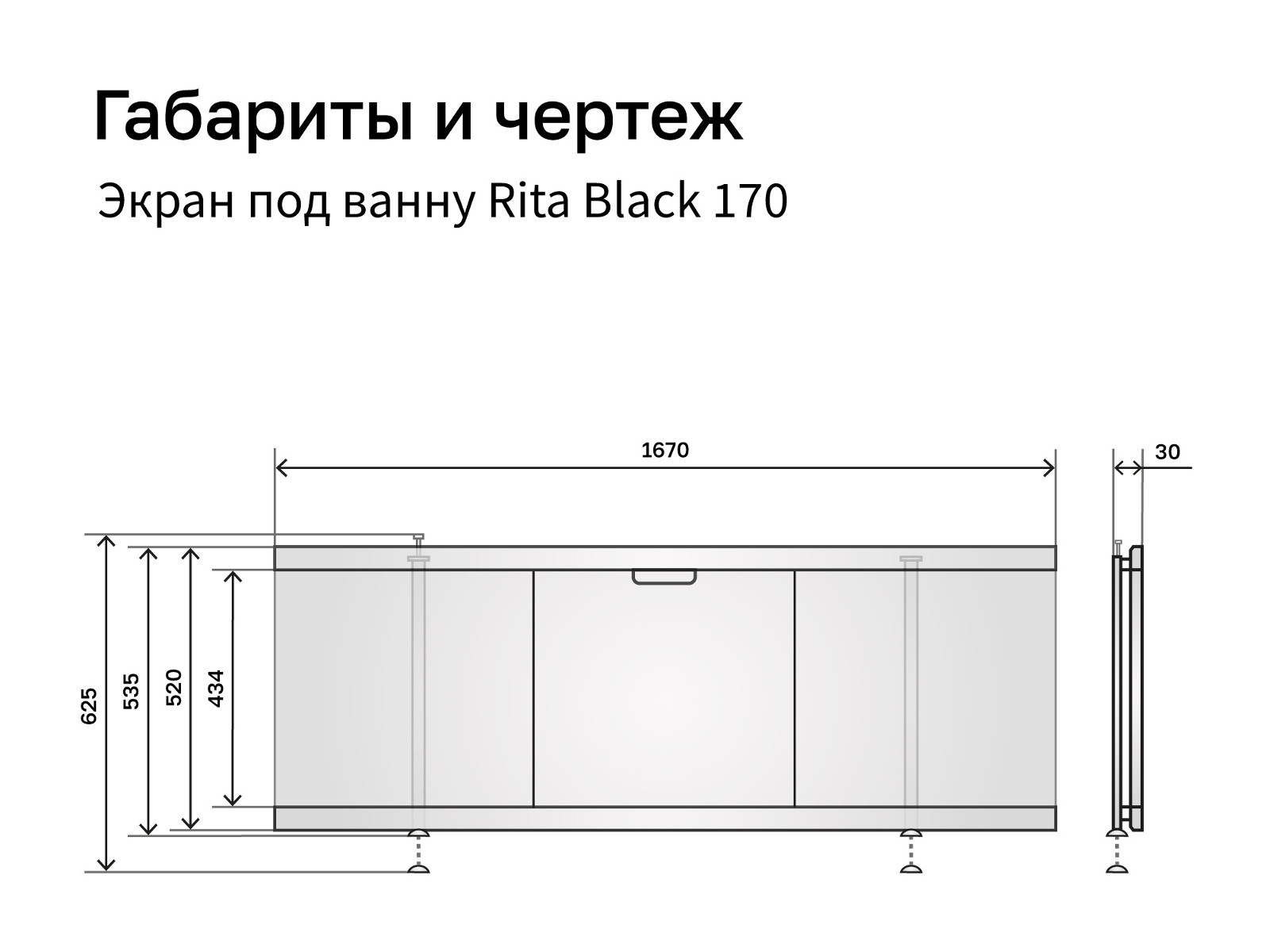 Экран под ванну МДФ Rita Black 1700 мм черный мрамор