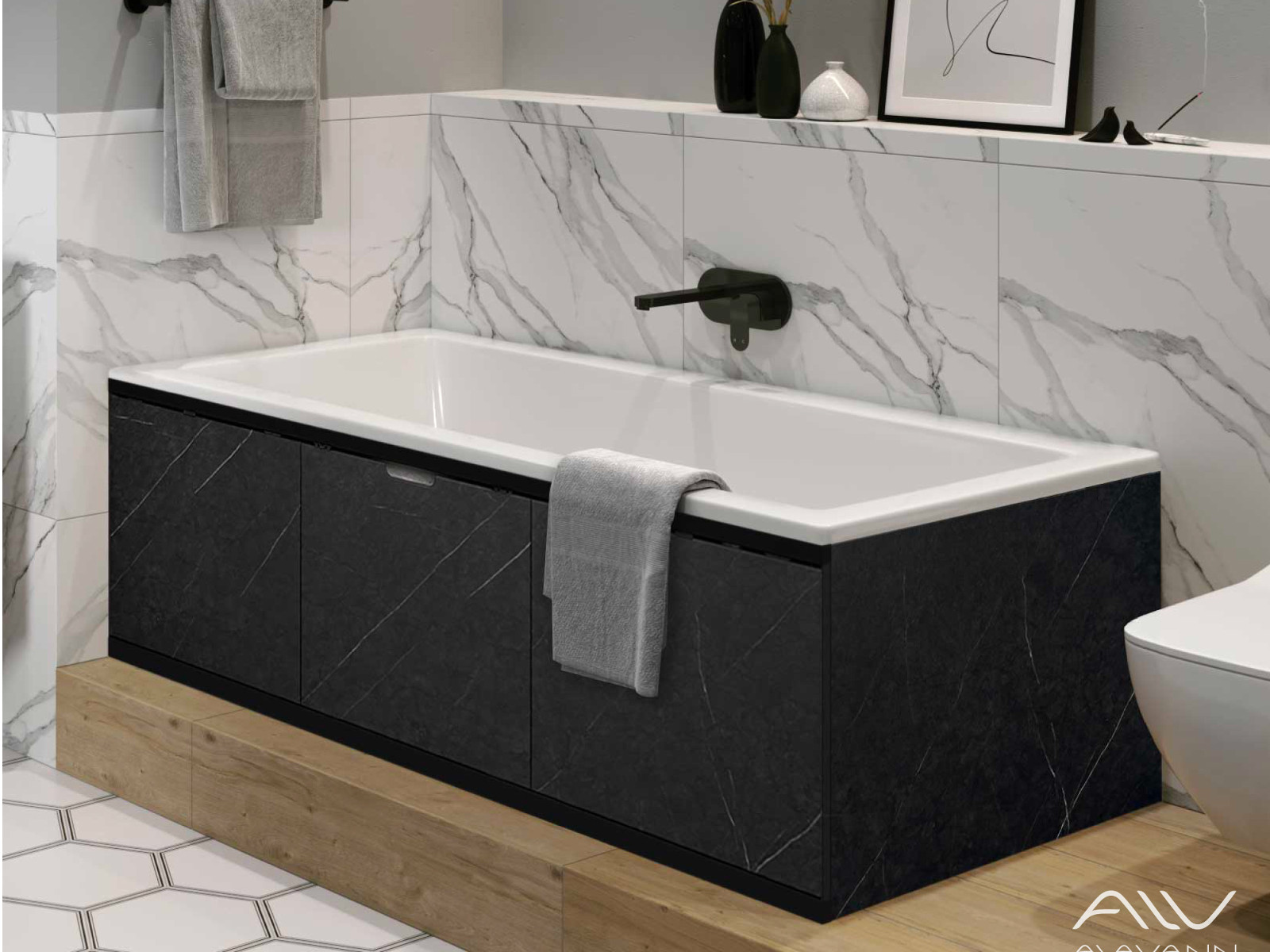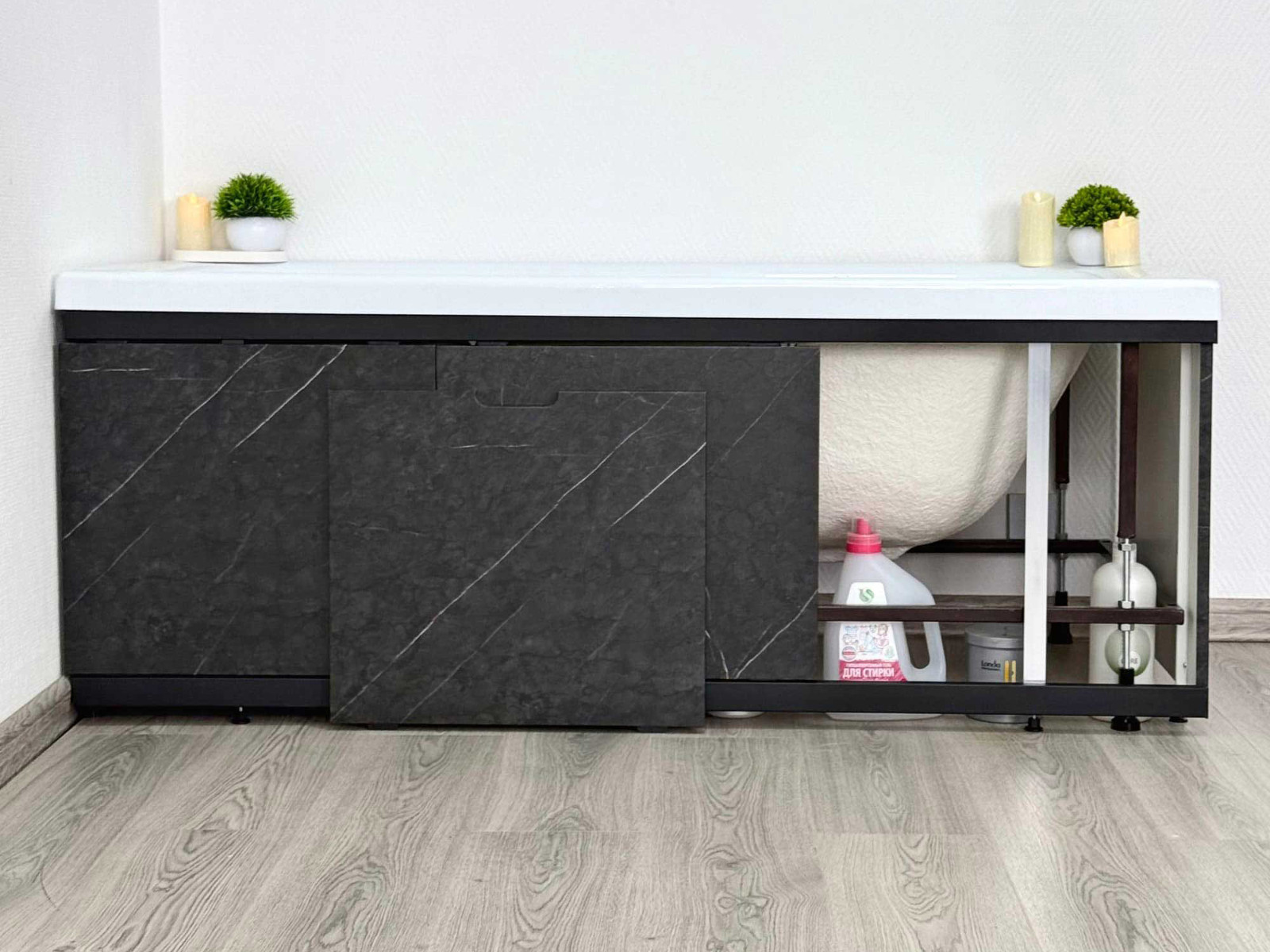 - Экран под ванну МДФ Rita Black 1700 мм черный мрамор