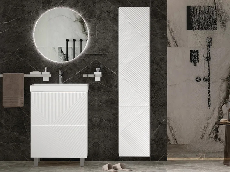 Материалы тумбы: МДФ, влагостойкая ЛДСП, полимерное покрытие ПВХ, европейская фурнитура
