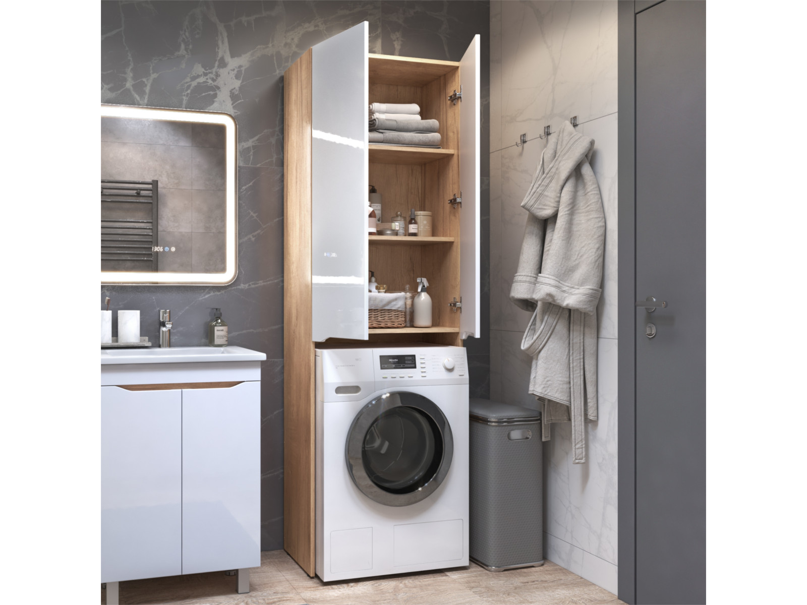 - Шкаф комбинированный Grani 640 под стиральную машину дуб золотой