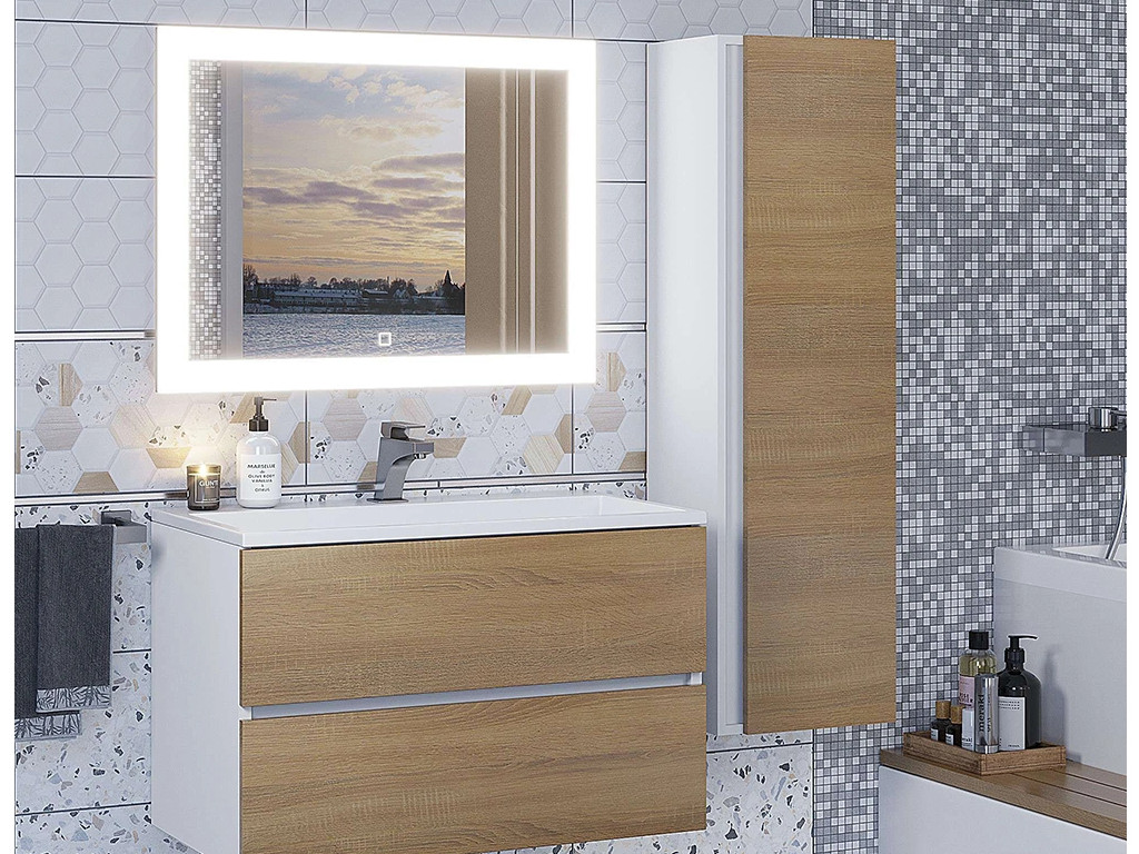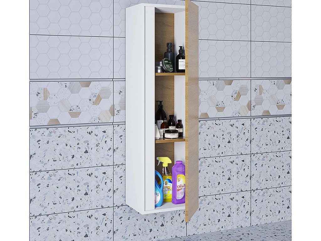 - Шкаф-пенал для ванной Uperwood Barsa подвесной белый/дуб сонома