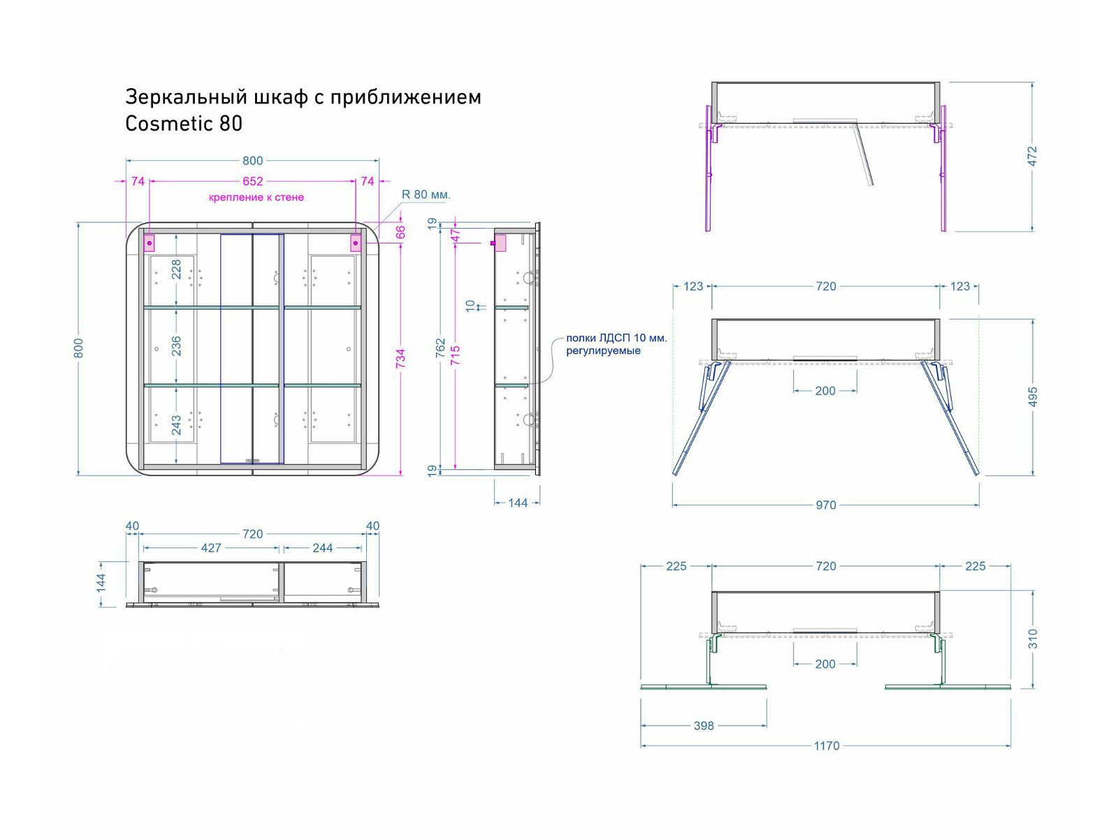 Шкаф зеркальный Cosmetic 80 без светильника