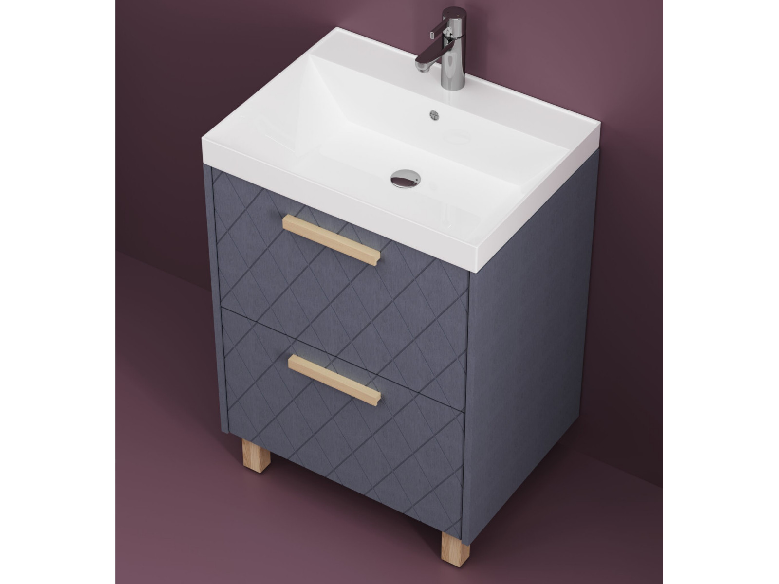 - Тумба Кристалл 60 напольная 2 ящика ручка дуб + ум Океан 60