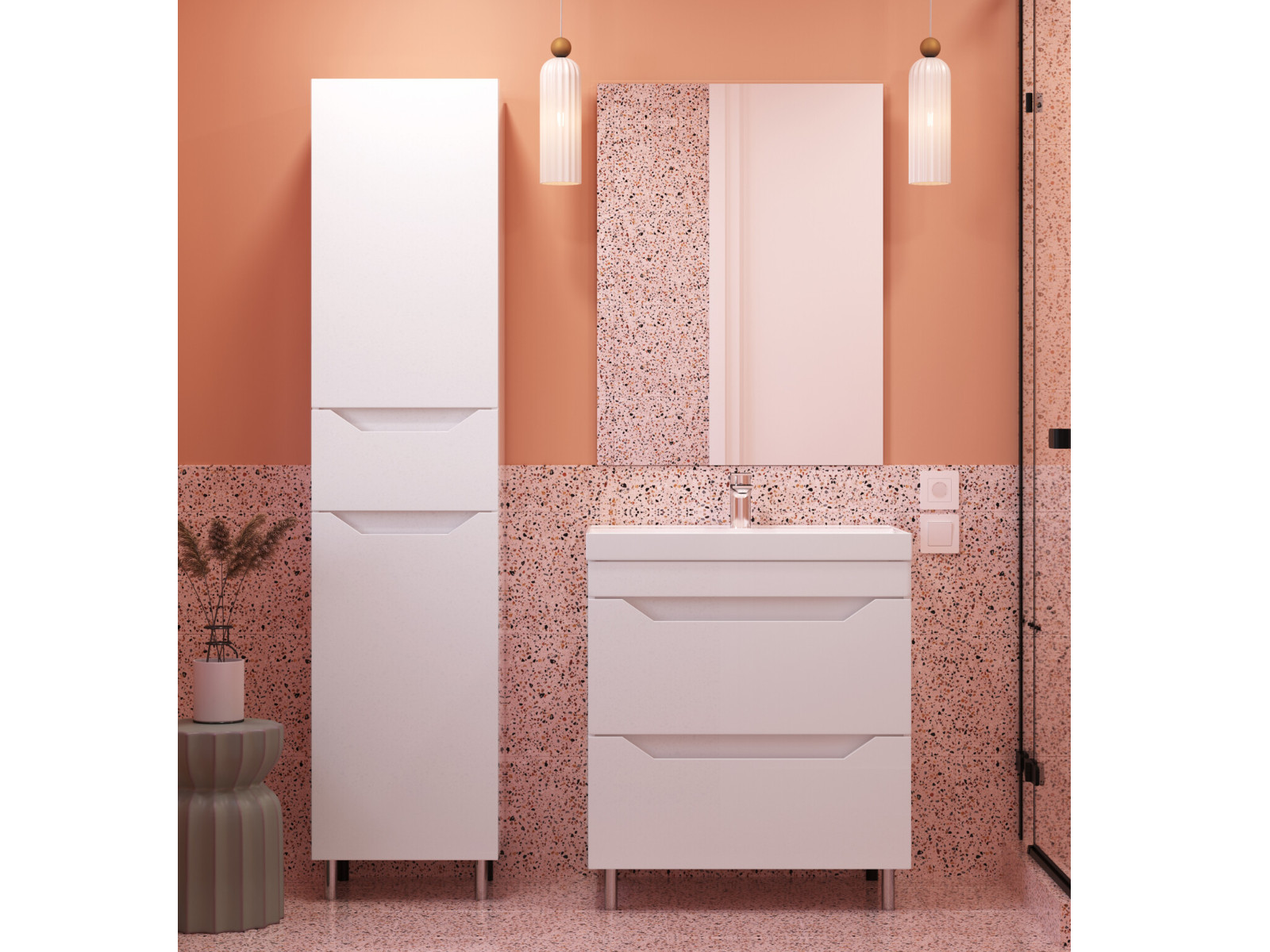 - Тумба "Сохо" 70 напольная 2 ящика белый + ум Слим 70