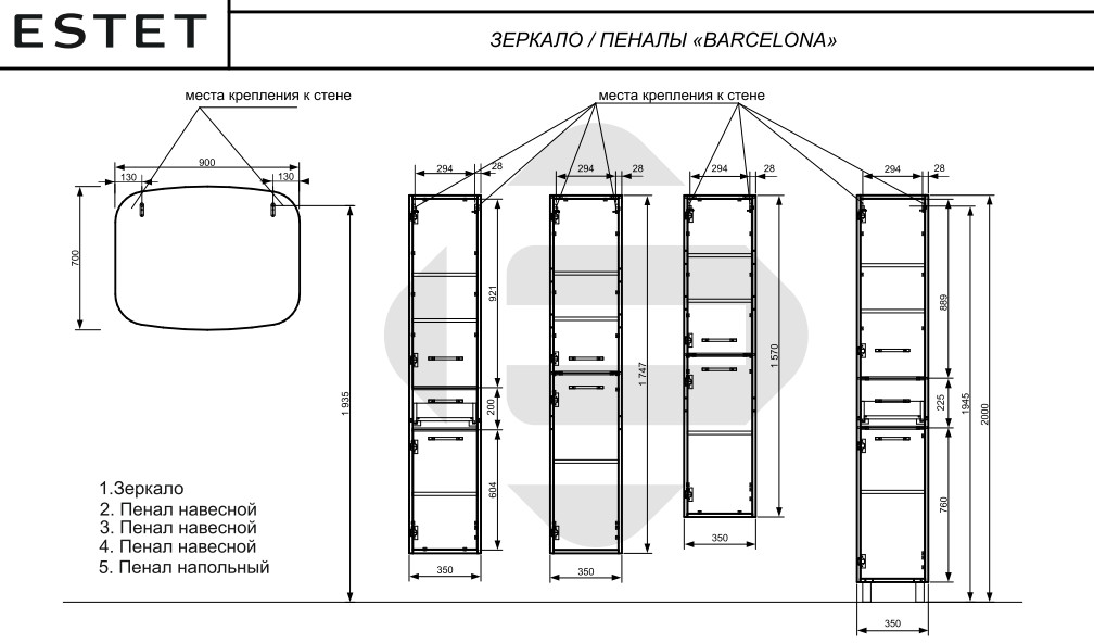 - Пенал подвесной Barcelona h=1570 мм правосторонний