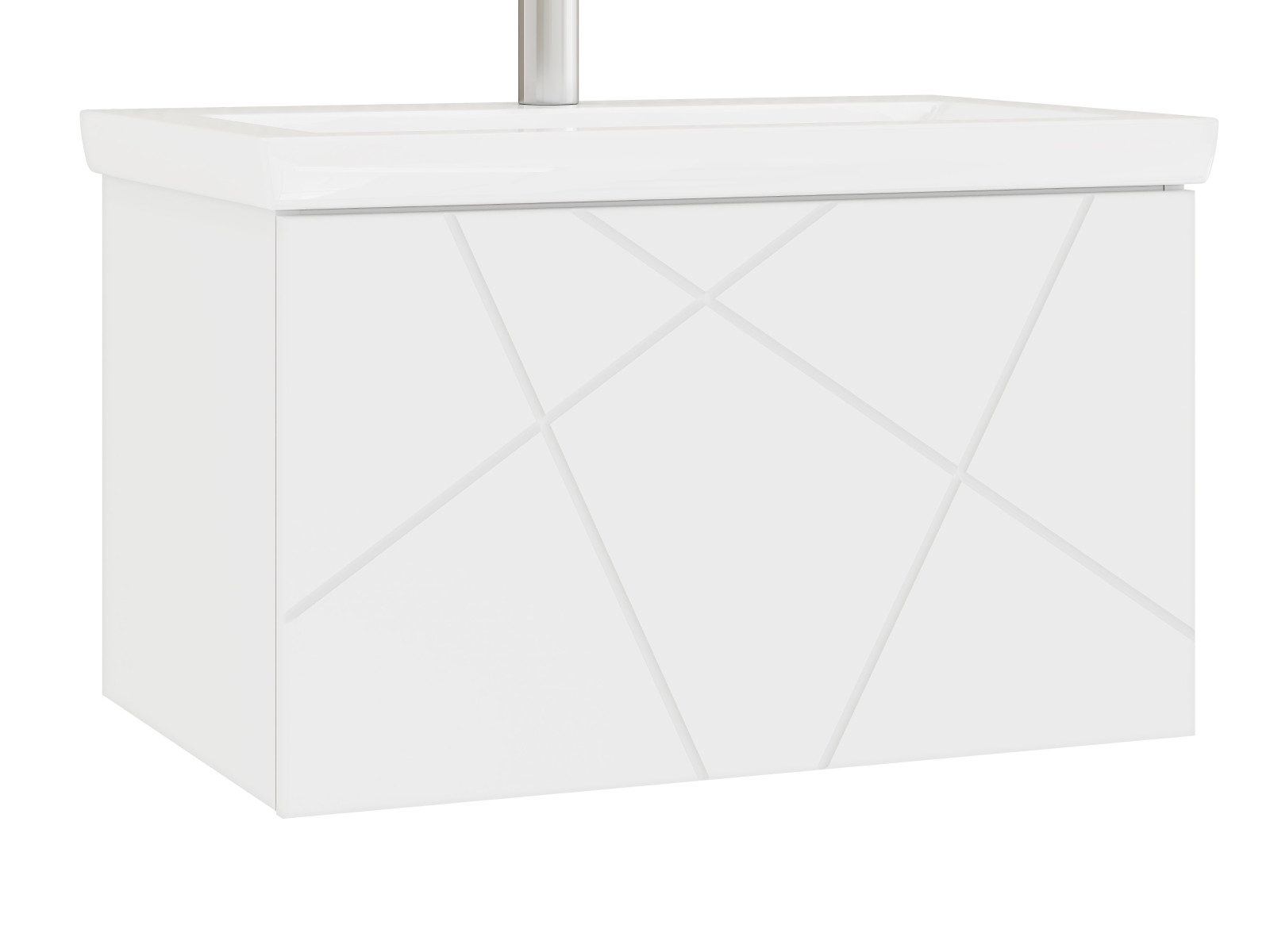 Оснащение: 1 выдвижной ящик, направляющие скрытого монтажа, открывание нажатием "push-to-open", 2 навеса, 1 сифон