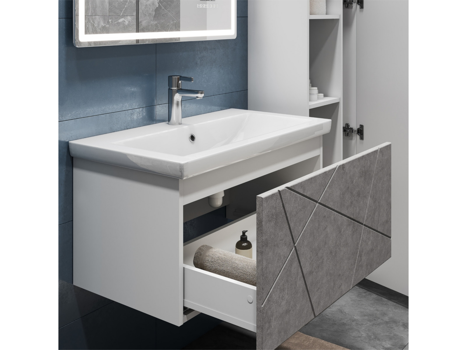 - Тумба Geometry 800-0-1 Como навесная бетон