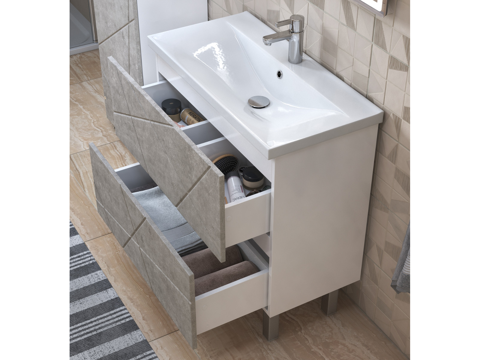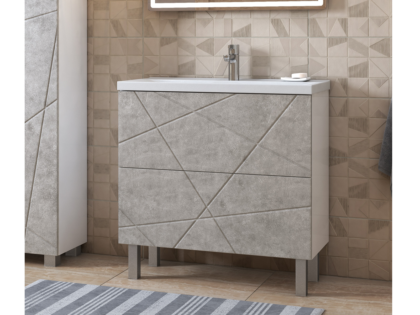 - Тумба Geometry 800-0-2 умывальник 9696 бетон
