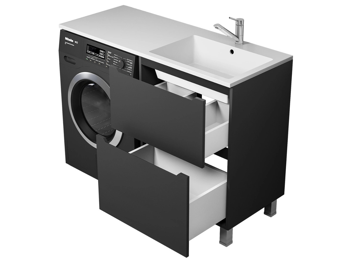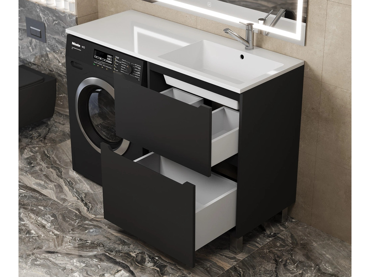 - Тумба под стиральную машину Uperwood Tanos 60 см, напольная, 2 ящика, черная