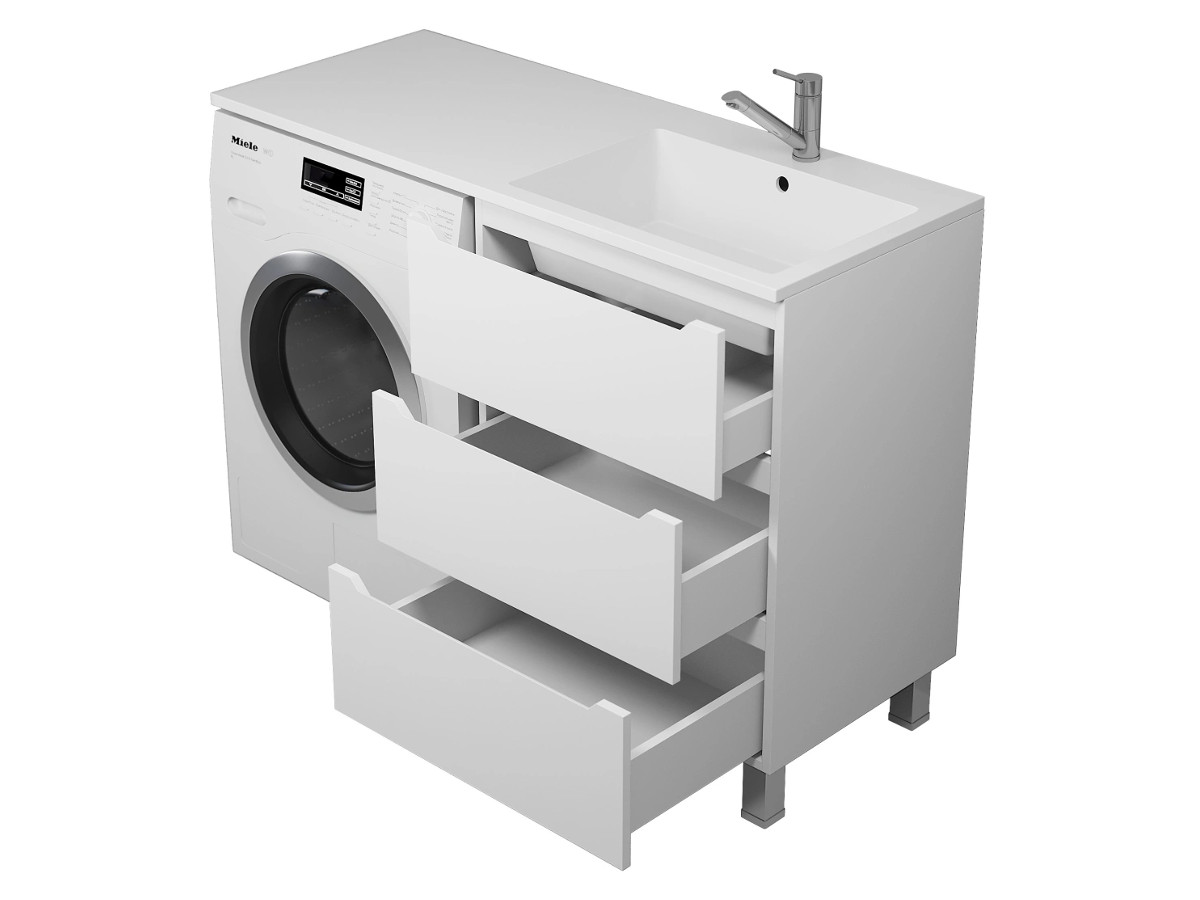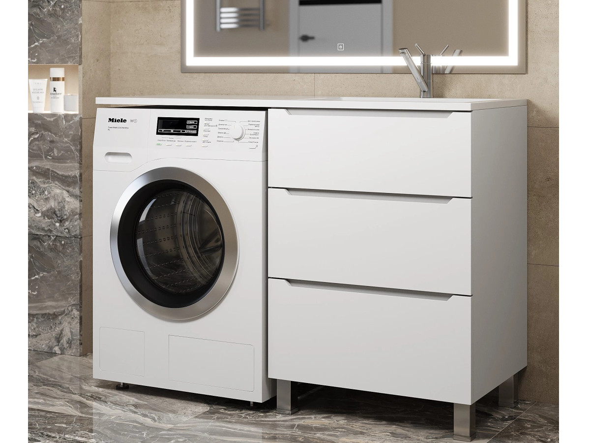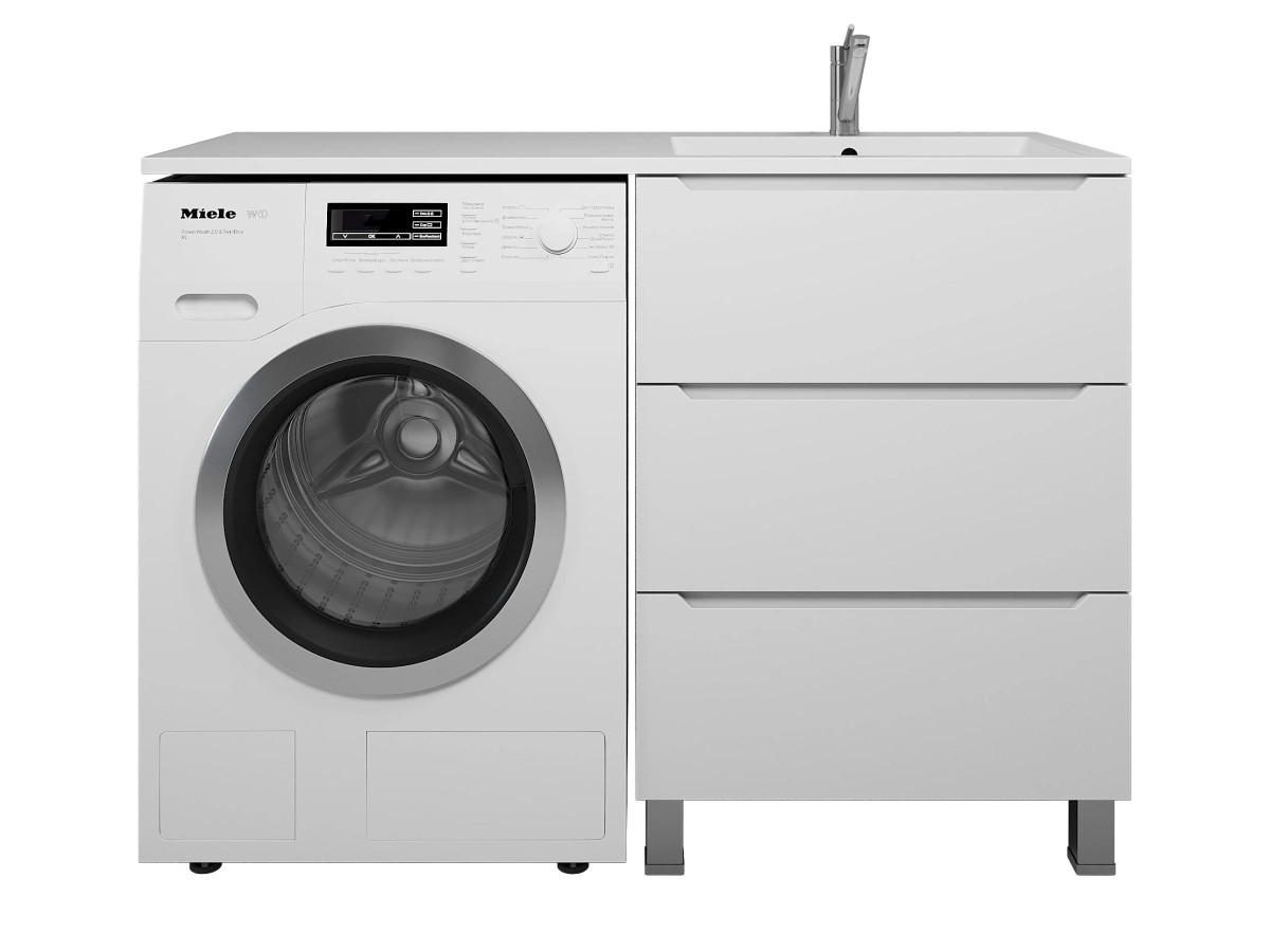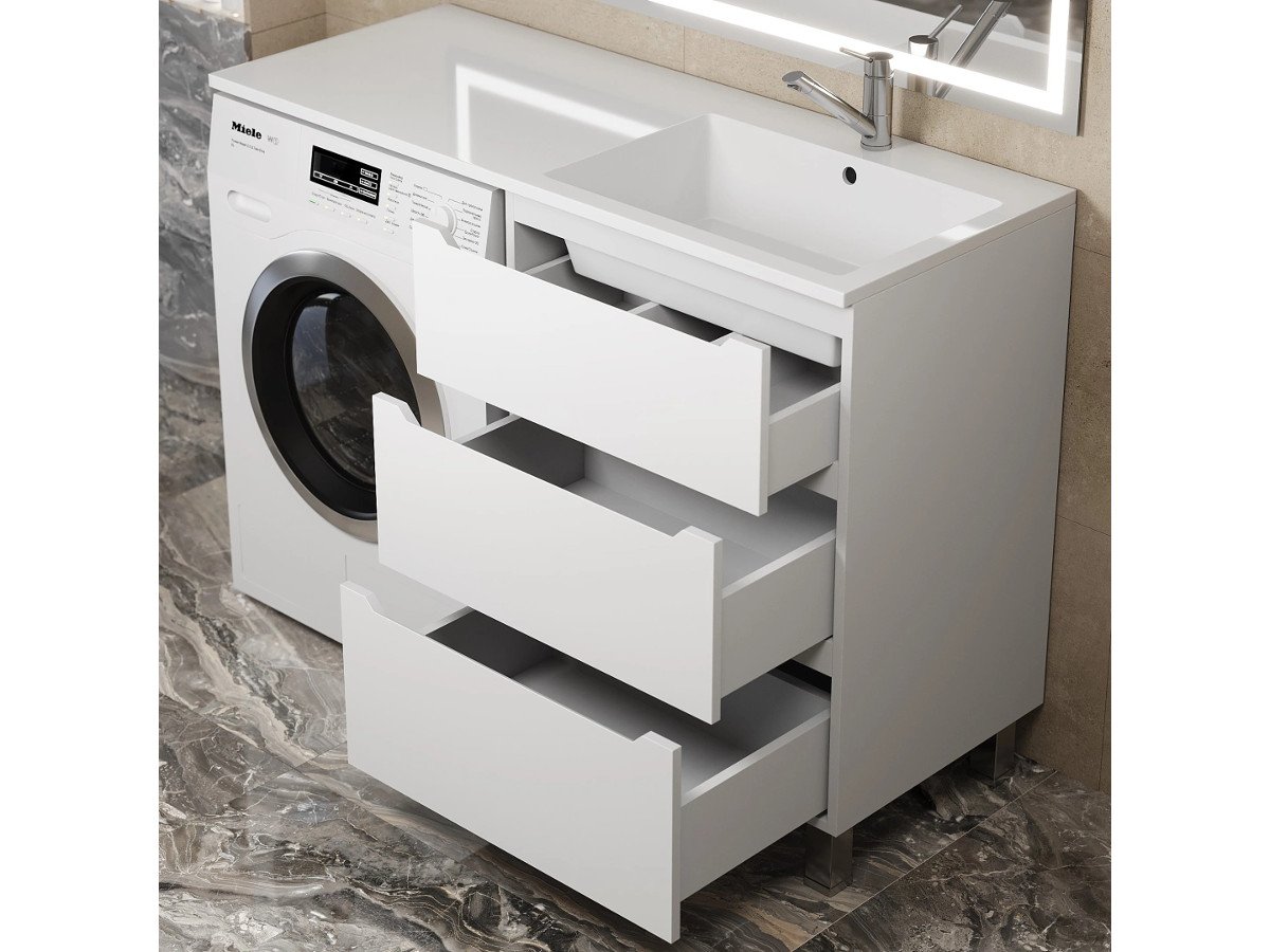 - Тумба под стиральную машину Uperwood Tanos 60 см, напольная, 3 ящика, белая