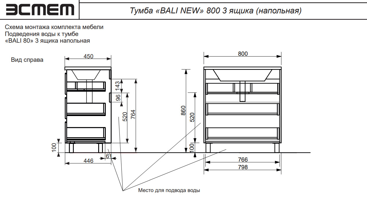 Тумба с раковиной Bali new 800 напольная 3 ящика
