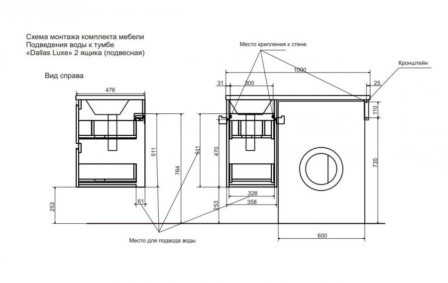 - Тумба с раковиной Dallas Luxe 1000 навесная 2 ящика левая