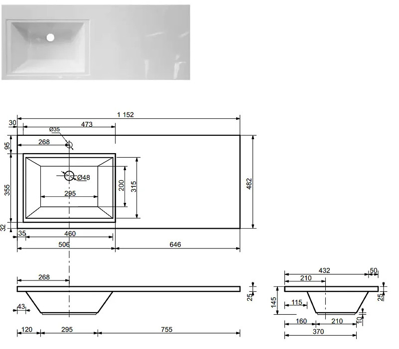- Тумба с раковиной Dallas Luxe 1150 напольная 2 ящика левая
