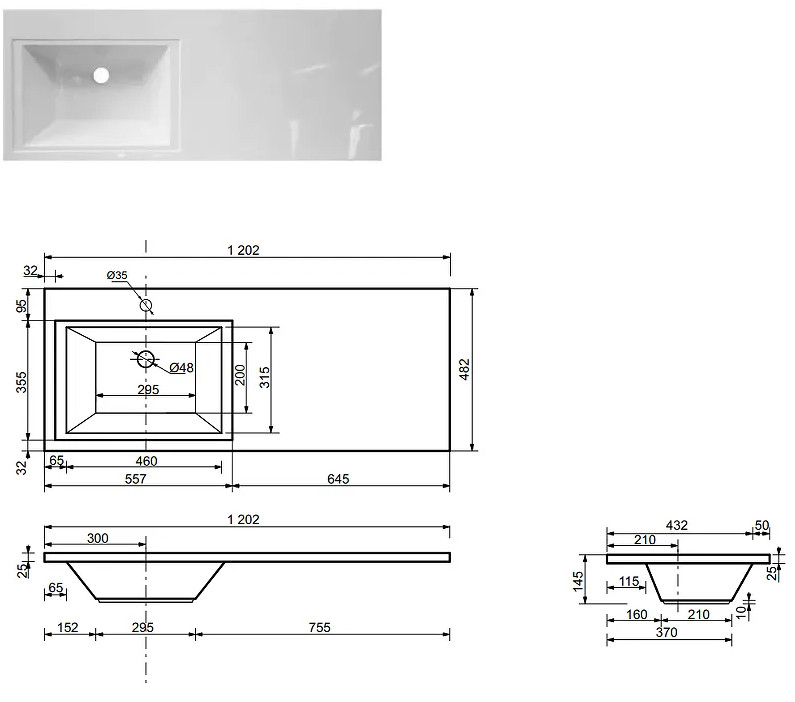 - Тумба с раковиной Dallas Luxe 1200 напольная 2 ящика левая