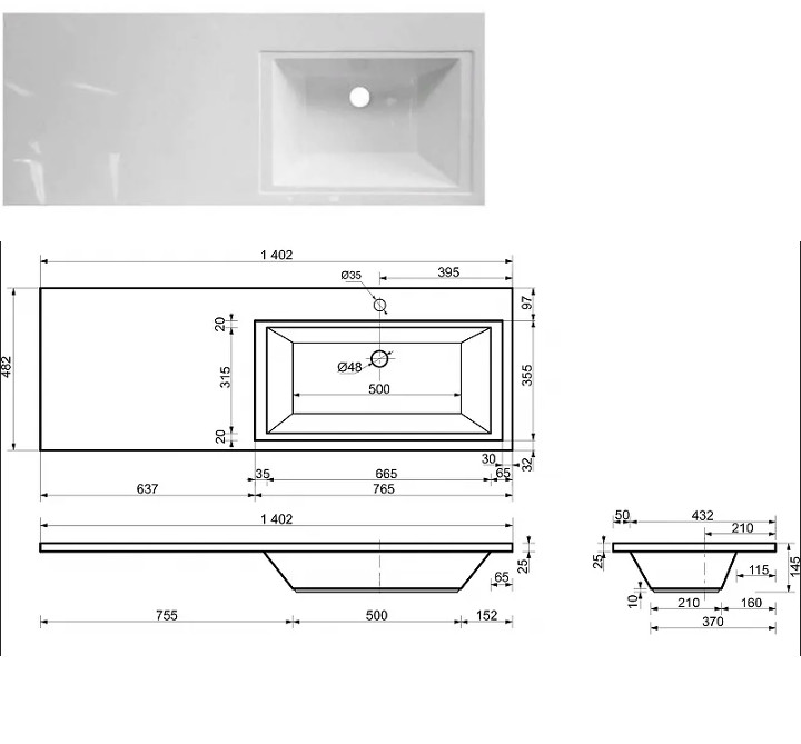 - Тумба с раковиной Dallas Luxe 1400 навесная 2 ящика правая