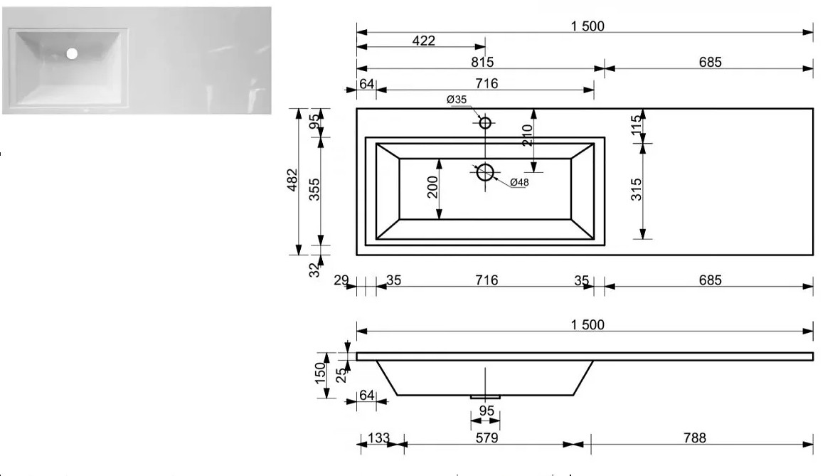 - Тумба с раковиной Dallas Luxe 1500 напольная 3 ящика левая
