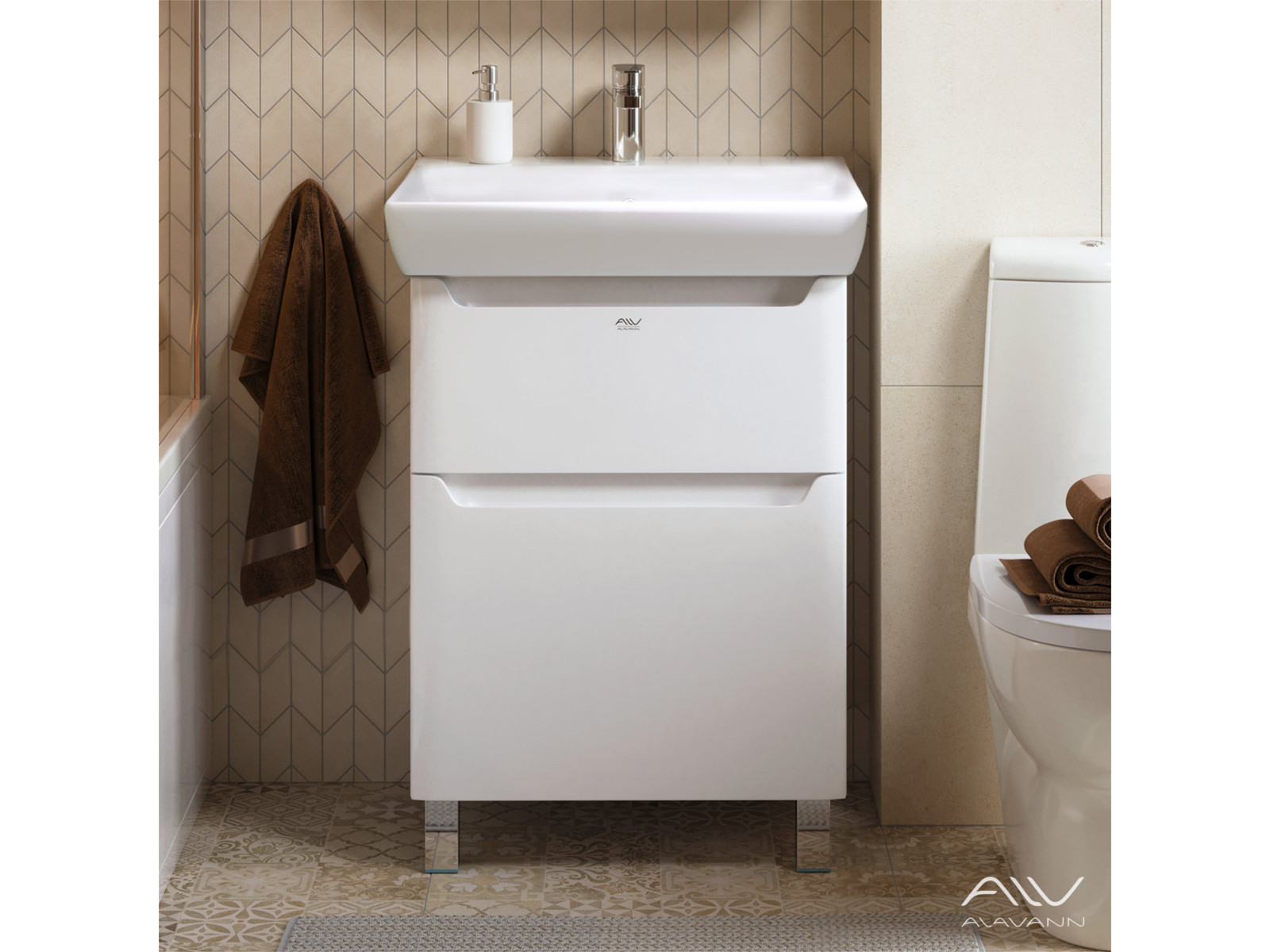 - Тумба с раковиной Lana 60 белая Умывальник Q 60