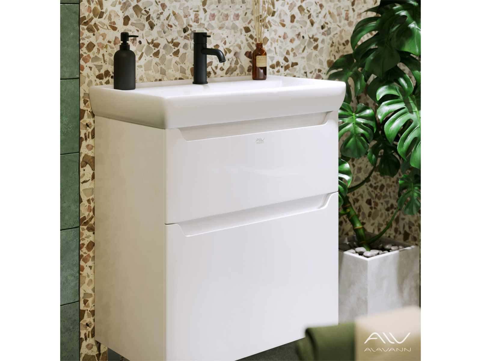 - Тумба с раковиной Lana 70 белая Умывальник Q 70