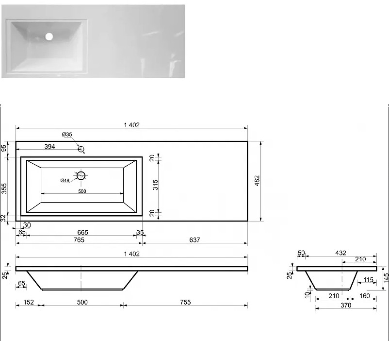 - Тумба с раковиной слева Dallas Luxe 1400 навесная 1 длинный ящик