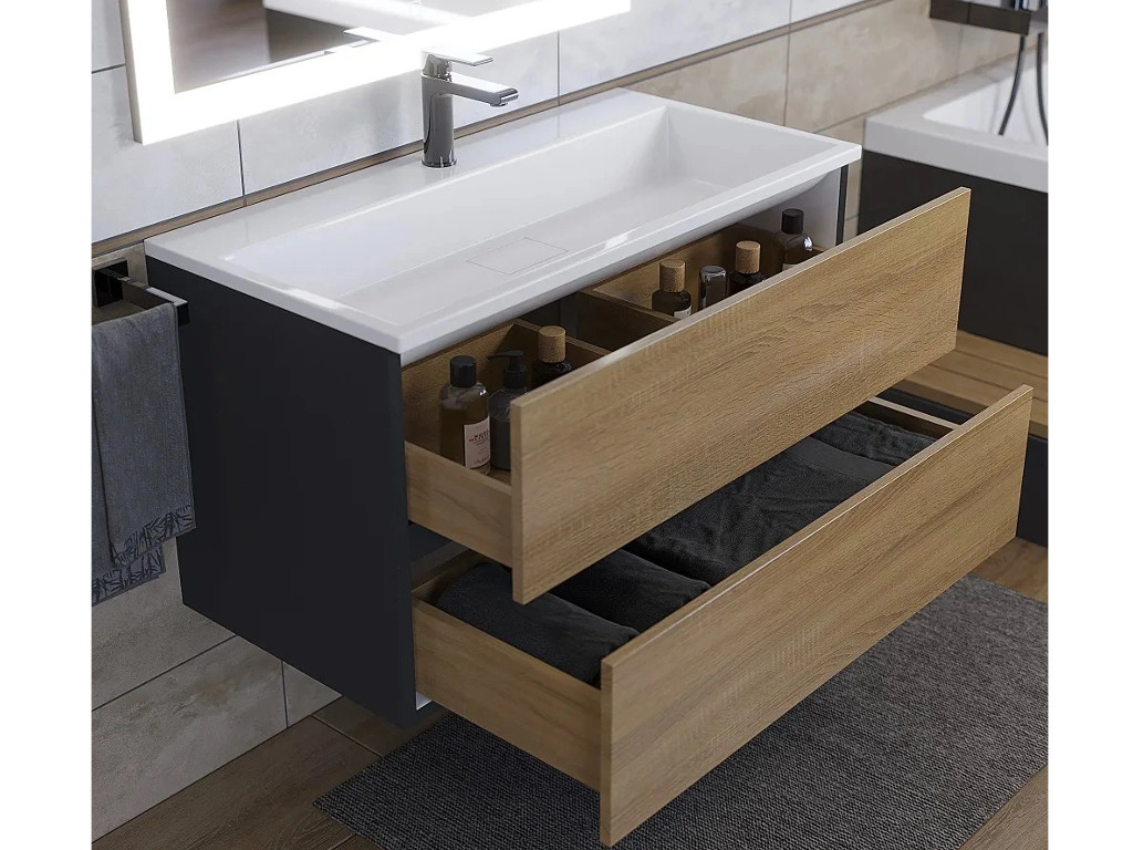 - Тумба с раковиной Uperwood Barsa 90 см раковина белая-тумба черная/дуб сонома