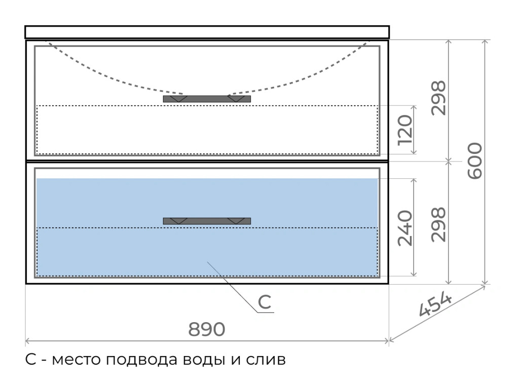- Выдвижные ящики изготовлены из влагостойкой ЛДСП.