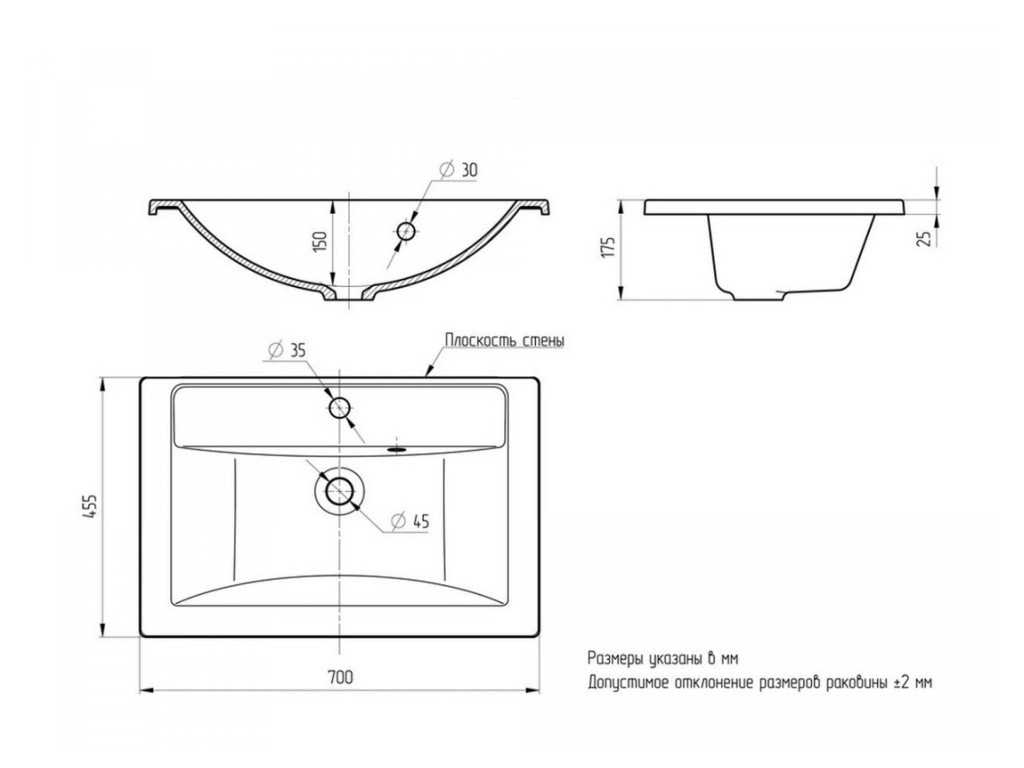 - Тумба с раковиной Uperwood Foster черная 70 см
