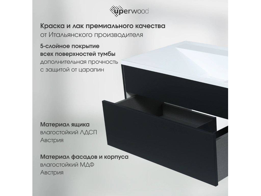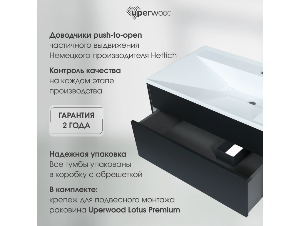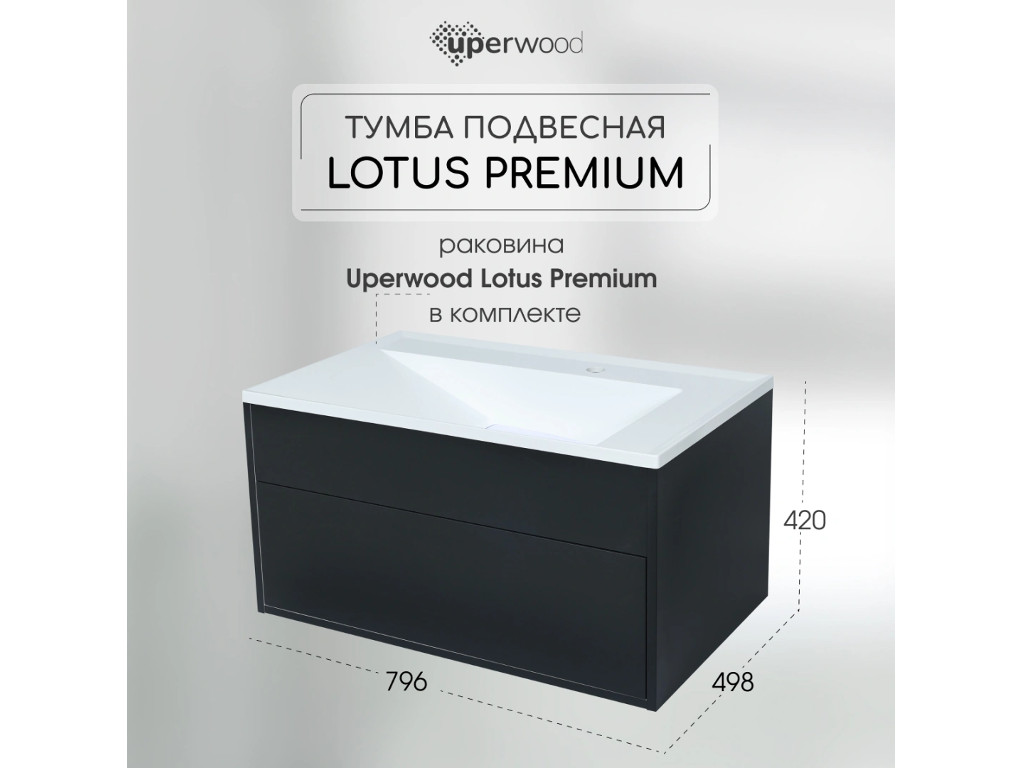 - Тумба с раковиной Uperwood Lotus Premium черная 80 см
