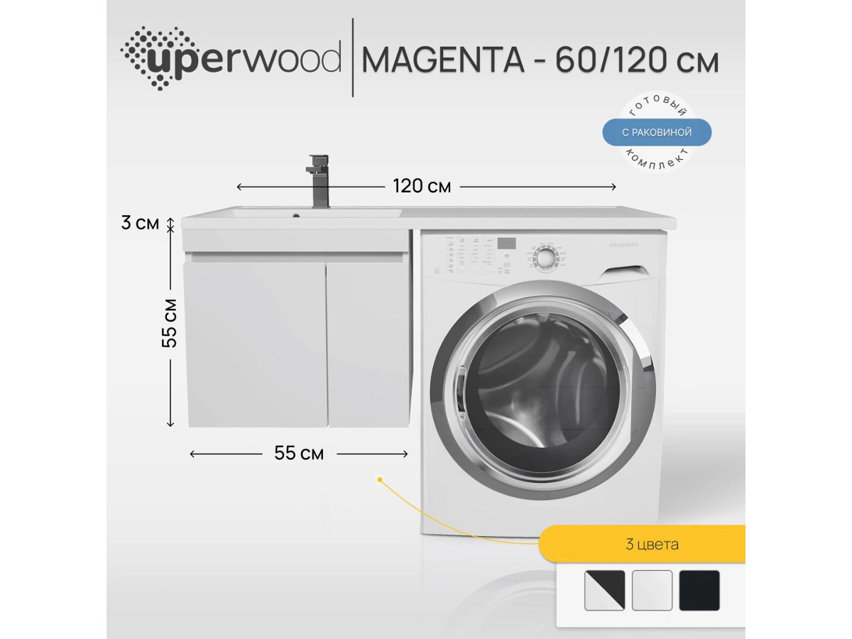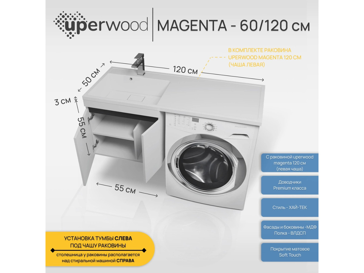 - Тумба с раковиной Uperwood Magenta 60-120 см подвесная белая с дверцами левая