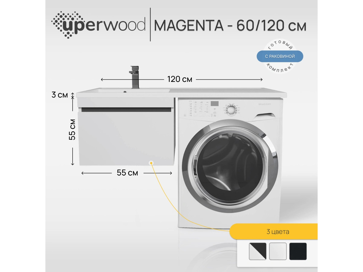 - Тумба с раковиной Uperwood Magenta 60-120 см подвесная белая/графит выдвижной ящик левая
