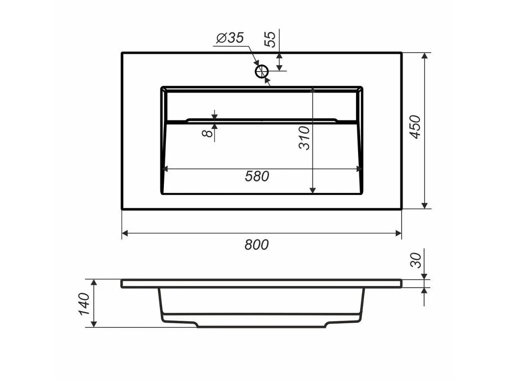 - Тумба с раковиной Uperwood Next Premium белая/графит 2 ящика 80 см