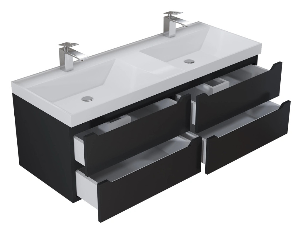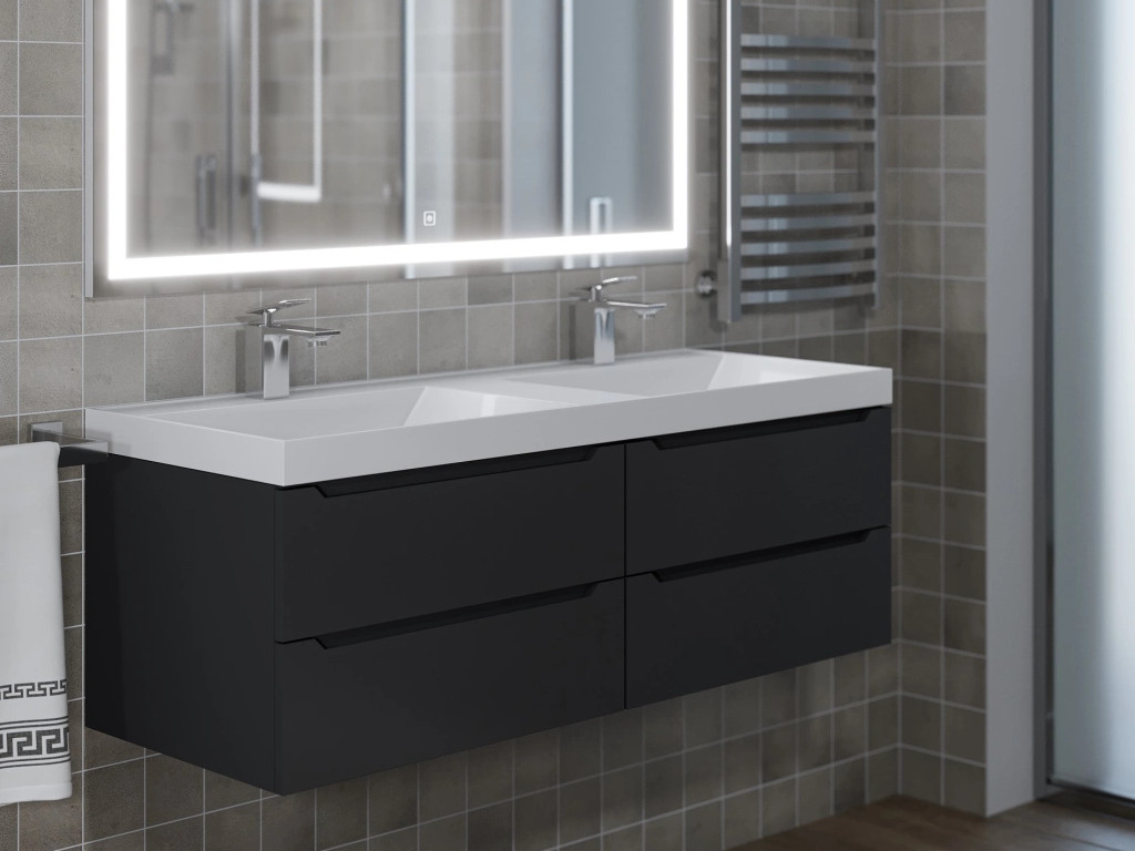 - Тумба с раковиной Uperwood Tanos 120 см подвесная двойная черная