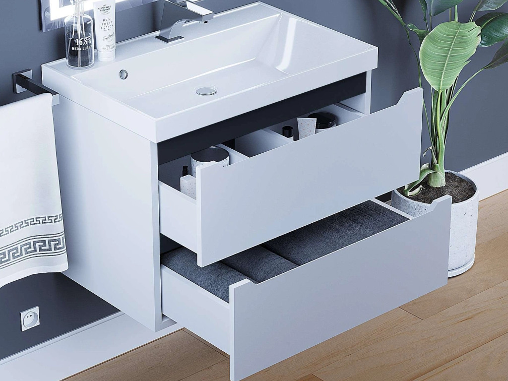- Тумба с раковиной Uperwood Tanos матовая белая/графит 70 см